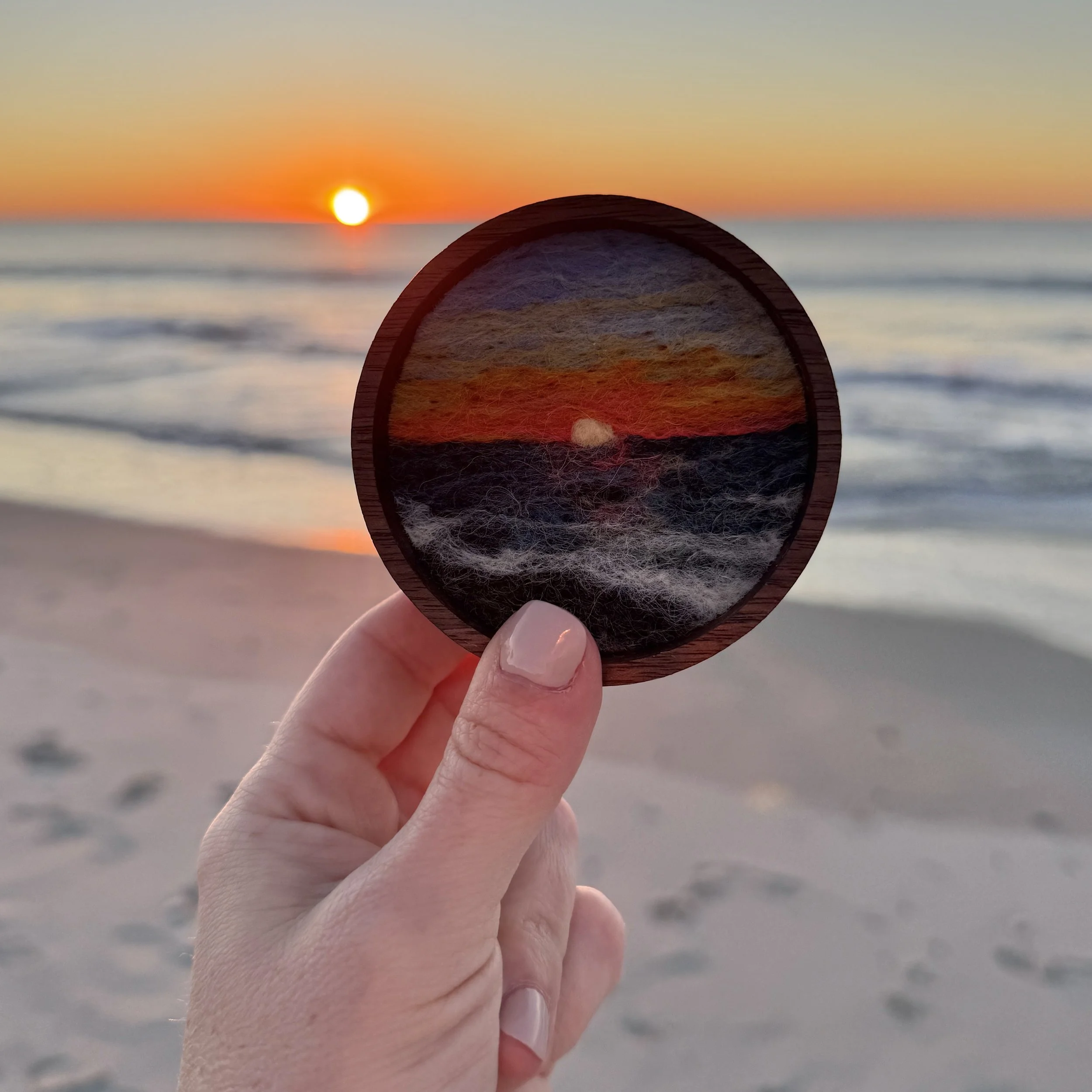 It was such a pleasure to spend the last week as Artist-in-Residence at Myrtle Beach State Park. My days revolved around the sunrises and sunsets. I was sure to be on the beach when the sky started to change color so I could watch the sun appear and disappear. It seems so slow at first but then you realize once it’s happening, it’s happening so fast. The light changes dramatically in just a minute or two and if you look away, you will miss something good. I really enjoyed matching up my wool fiber colors to those vibrant sunrises and sunsets!